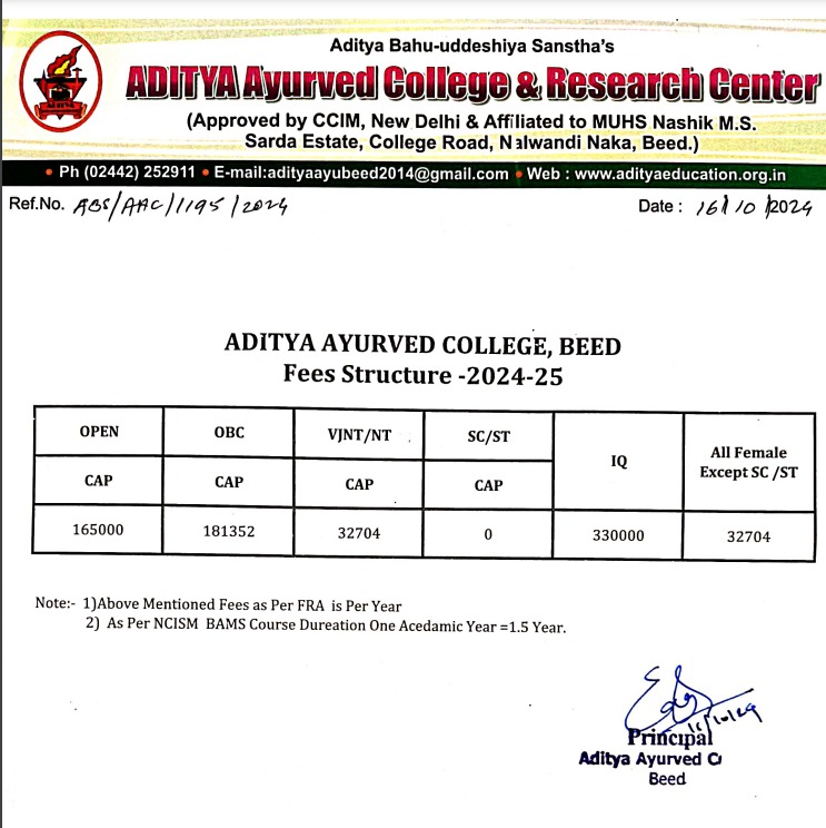 Aditya Ayurvedic College Beed – 431 122 (Maharashtra)